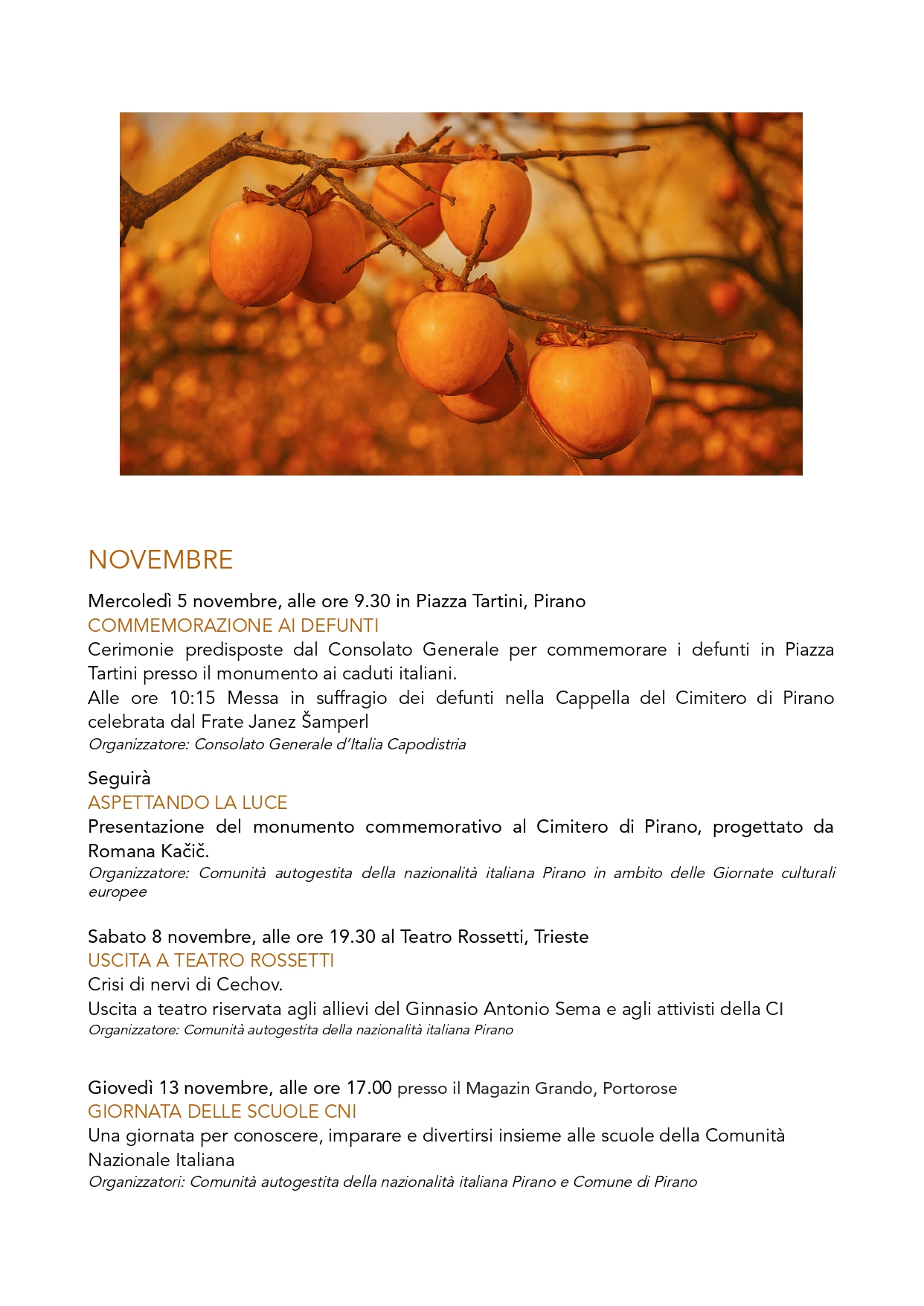 Novembre si presenta come un mese ricco di appuntamenti e occasioni di incontro: ricorrenze, conferenze, concerti e recite che coinvolgono la comunità.