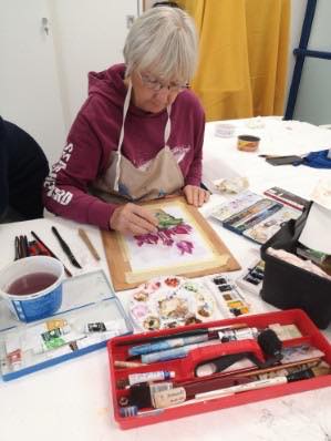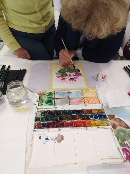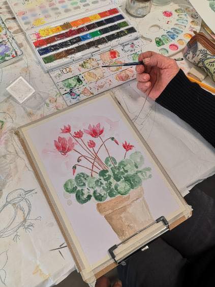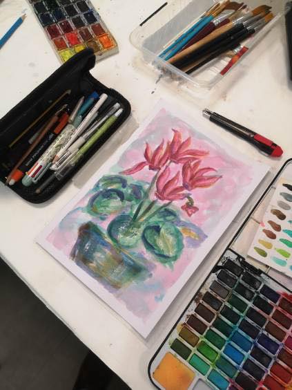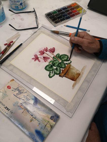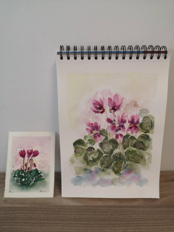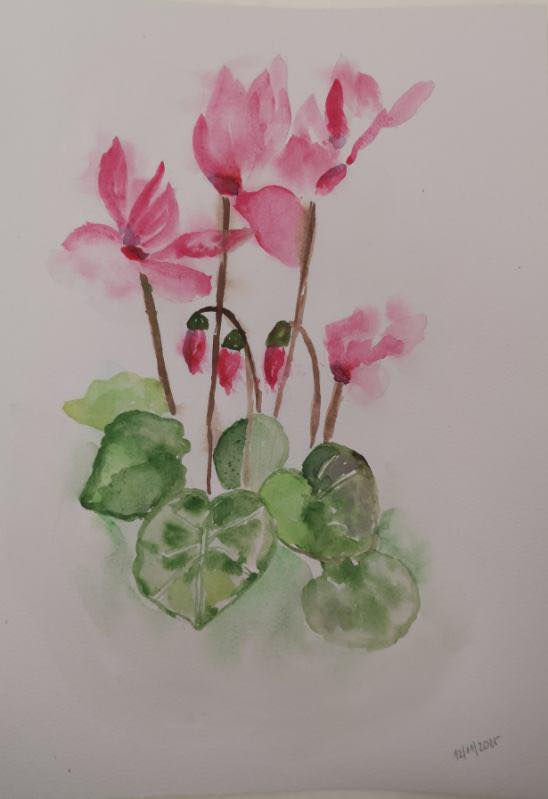 Ciclamini dipinti ad acquarello del gruppo di tecniche pittoriche guidato dalla mentore Nada Dellore, presso la sede dell’Incubatore Istria dell’Unione Italiana a S. Lucia.