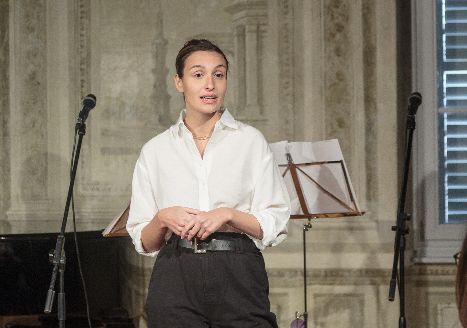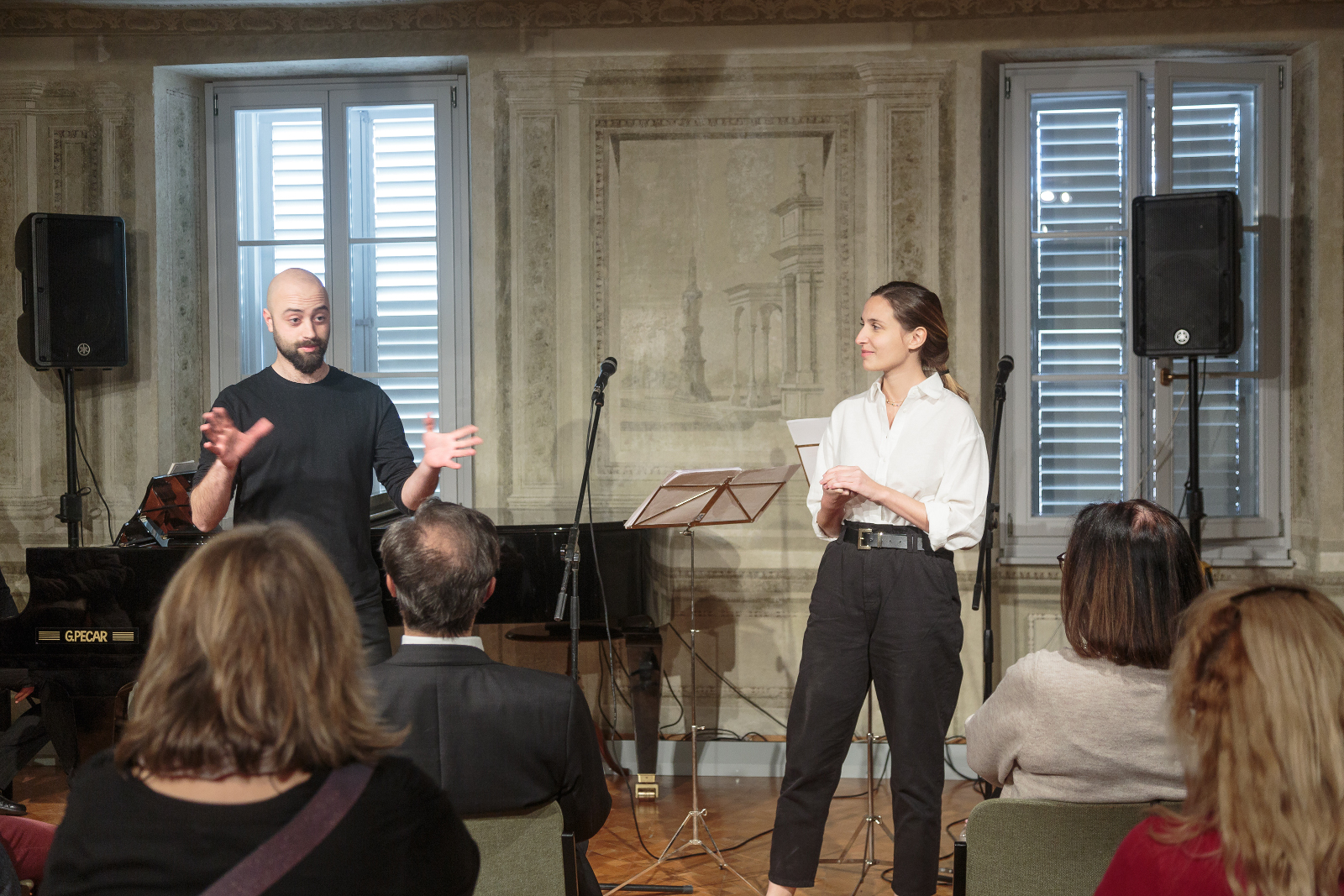Compagnia teatrale “Artifragili” con Veronica Dariol e Alejandro Bonn, Elia Macrì al pianoforte.