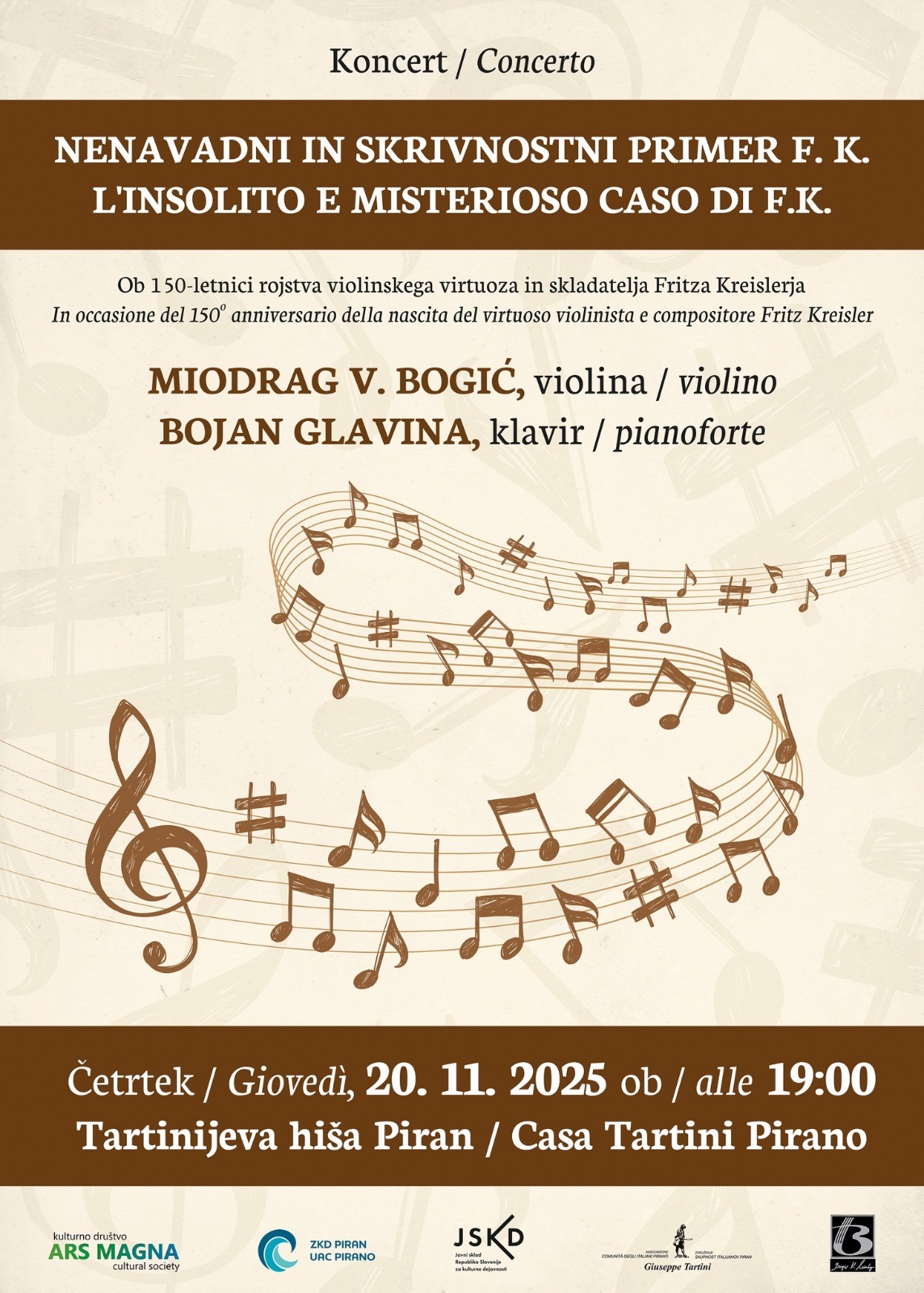 Organizatorja: Skupnost Italijanov “Giuseppe Tartini” Piran in Samoupravna skupnost italijanske narodnosti Piran.