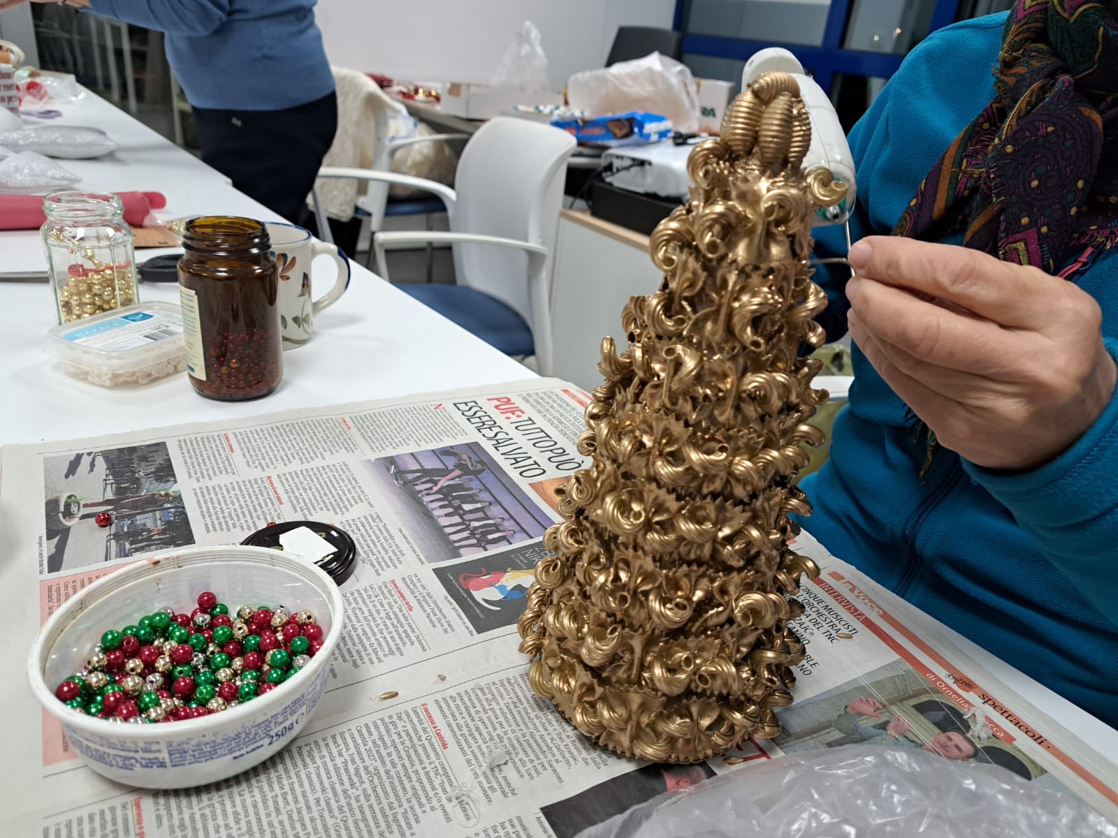 Skupina Zlata nit, ki jo vodi Maria Grazia Benussi, pridno pripravlja okraske za prihajajoče praznike.