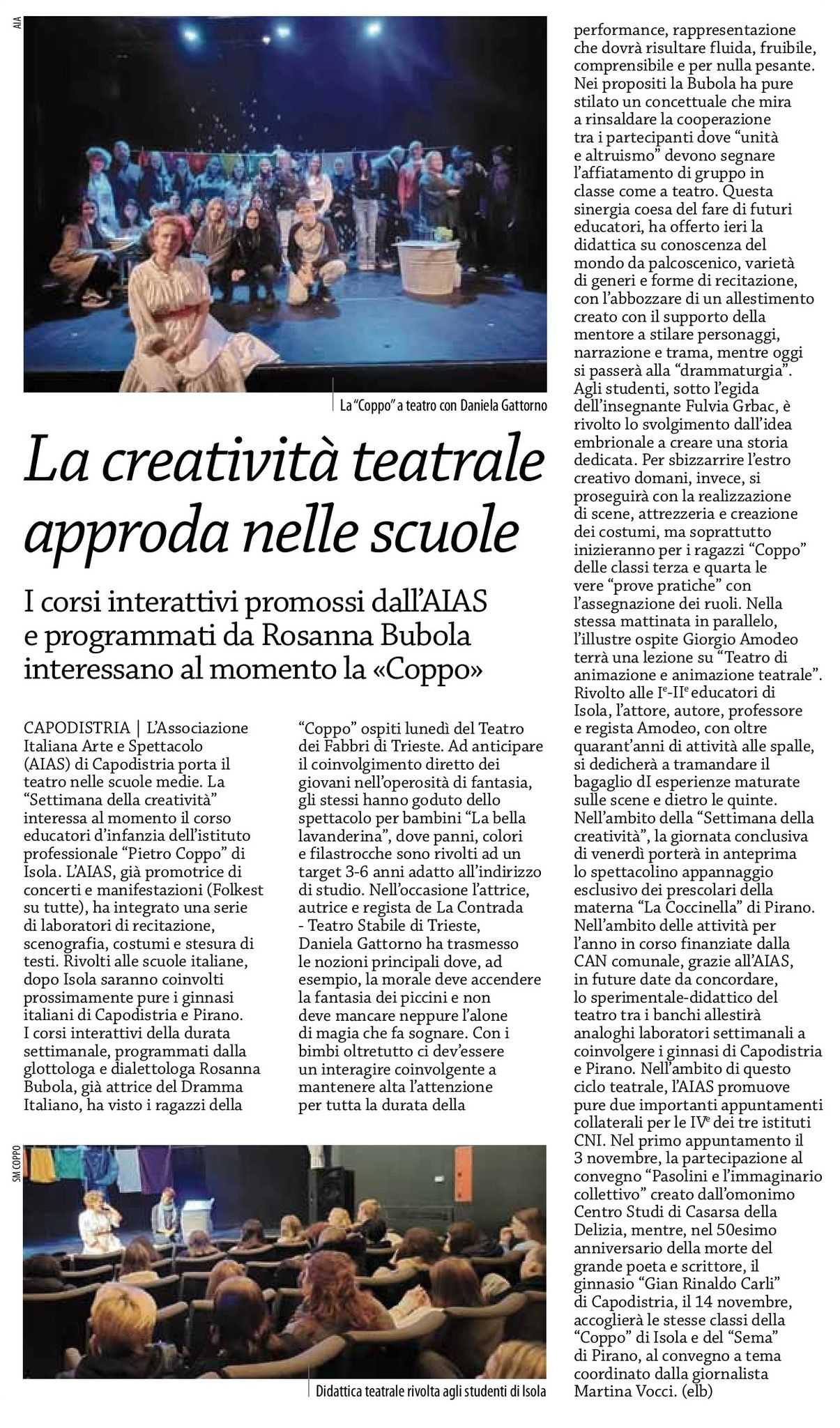 - La voce del popolo, La creatività teatrale approda nelle scuole (8. oktober)
