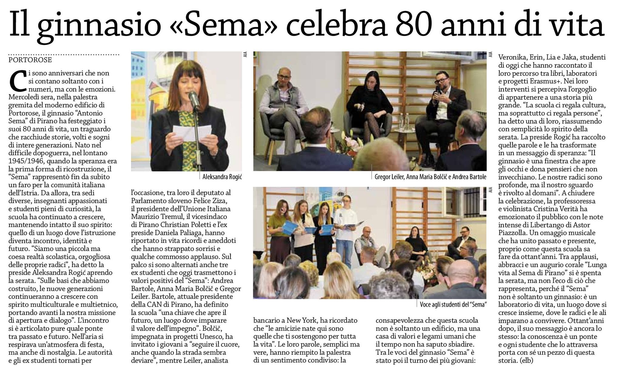 - La voce del popolo, Il ginnasio “Sema” celebra 80 anni di vita (24. oktober)
