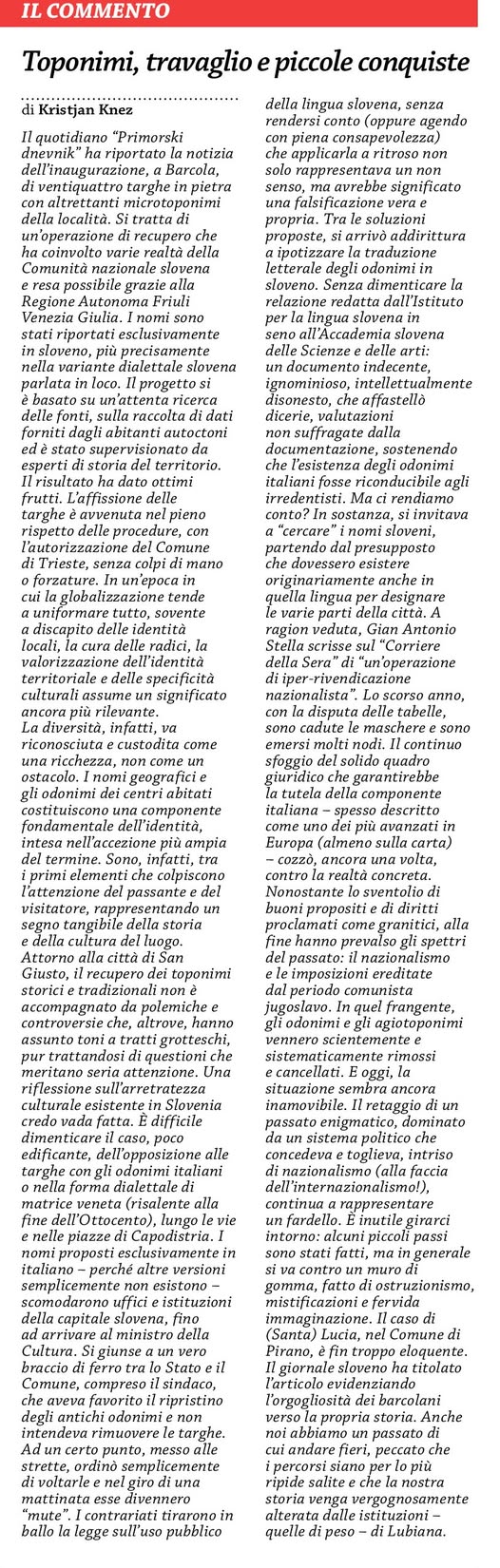 - La voce del popolo, Toponimi, travaglio e piccole conquiste (4. oktober)