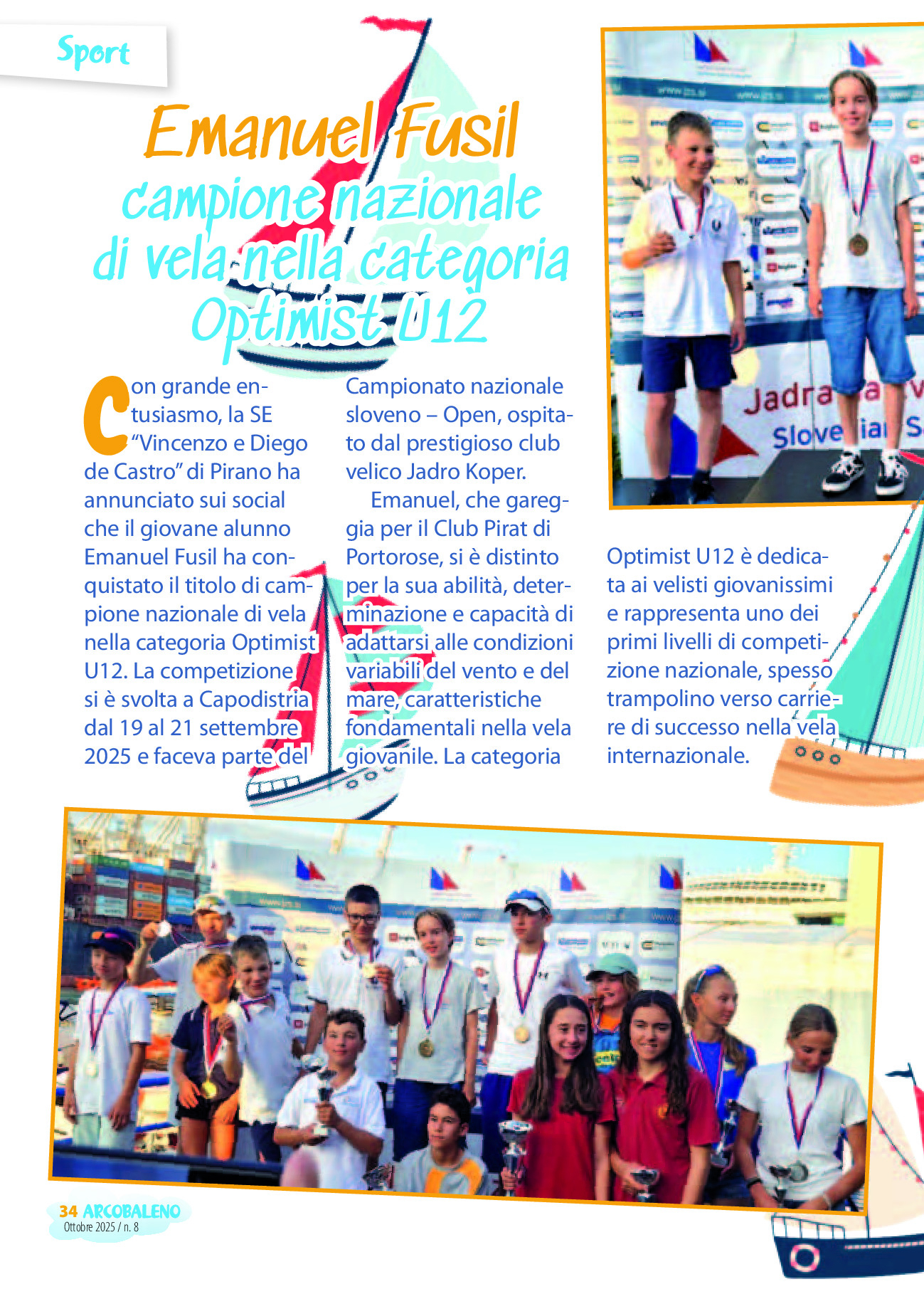 - Arcobaleno, Emanuel Fusil: campione nazionale di vella nella categoria Optimist U12 2 (oktober)