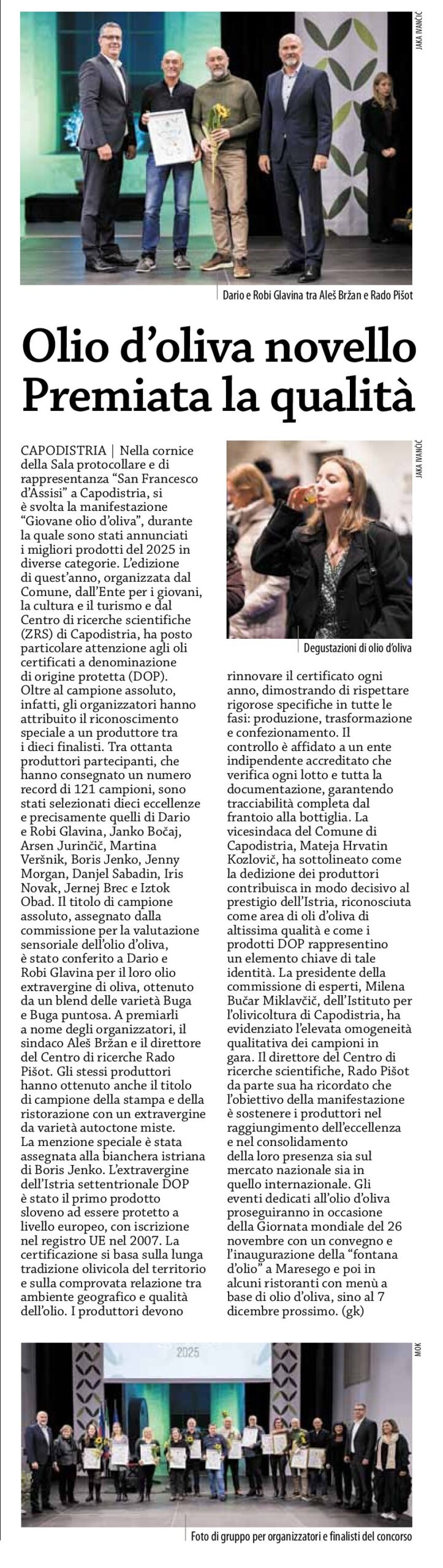 - La voce del popolo, Olio d’oliva novello. Premiata la qualità (24. november)