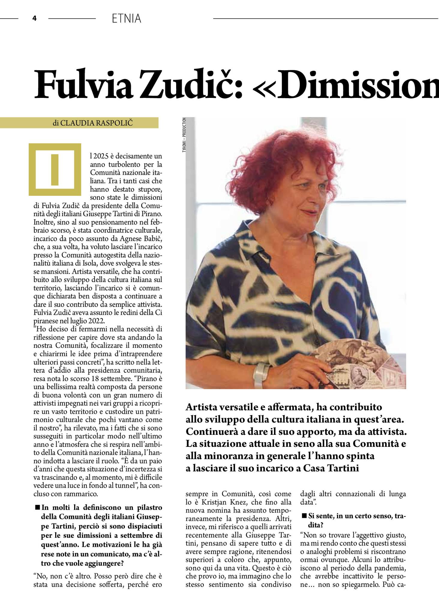 - Panorama, Fulvia Zudič: “Dimissioni sofferte, ma necessarie” 1 (30 novembre)